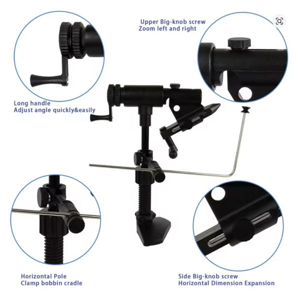 Etau rotatif, L'ossature de l'étau est en alliage léger, et les parties fonctionnelles en acier. La tension de la rotation est réglable.Tous les étaux EUPHEN sont livrés avec un pied à serrage rapide et un guide fil. Support de machoire supplémentaire.